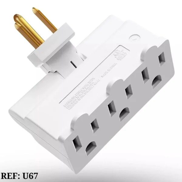 – Tres salidas: Ofrece tres tomas para conectar dispositivos o electrodomésticos, lo que facilita la organización y el ahorro de espacio, eliminando la necesidad de múltiples enchufes en la pared.
